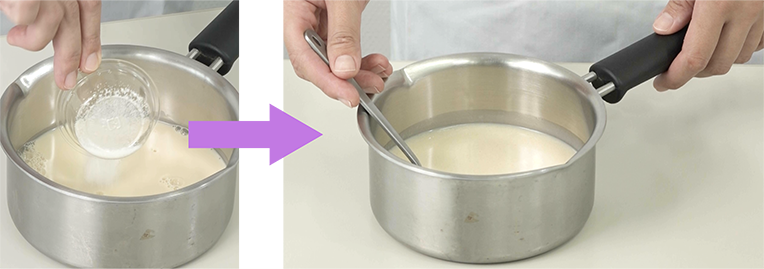 そのため、すぐ加熱するとゲル化材がまだ溶けていないため、