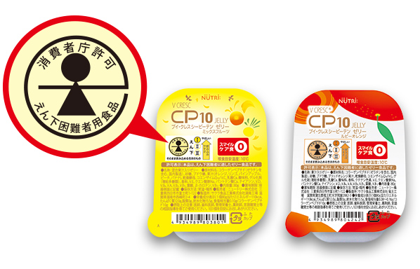微量栄養素補給というコンセプトはそのままに、コラーゲンを低分子化し、水に溶けやすくした「コラーゲンペプチド」を10g配合したのが『ブイ・クレスCP10』シリーズです。不足しがちなたんぱく質も補給できる、と日々の食事に愛用する方が増えています。そんな同シリーズに、消費者庁より「えん下困難者用食品」として許可を得た、誤嚥が心配な方にもお召し上がりいただけるゼリータイプがあるのをご存知ですか。食欲が出ない、食べる気がしない、あまり量が食べられない…という方でも負担にならないよう、1カップで110kcalと、少量で高栄養を実現しました。やさしい甘さのミックスフルーツ味とさわやかなオレンジ風味で、デザートとしても最適です。